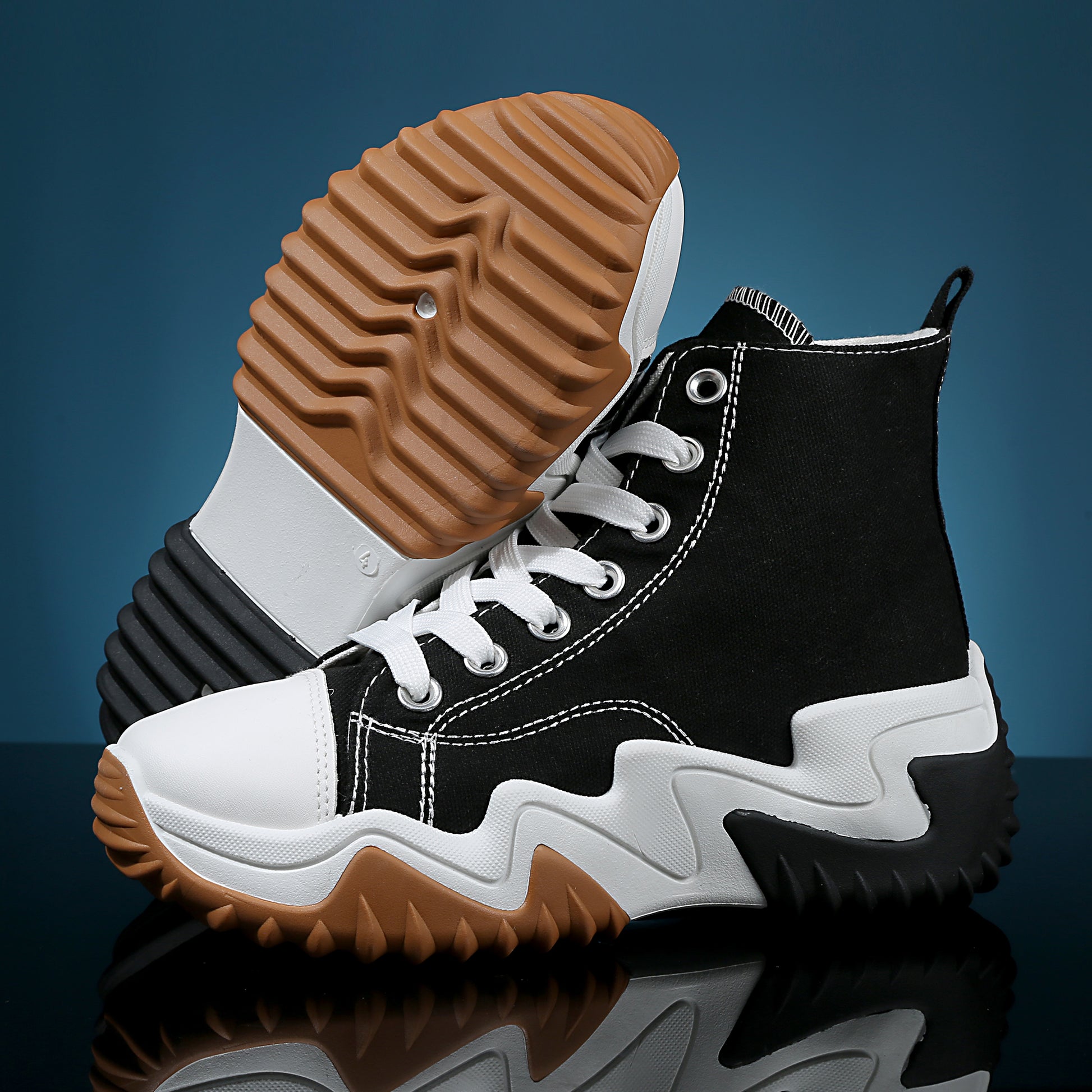 The chunky sole of these high tops adds a touch of trendiness to your casual outfit, while its flexibility and lightweight feature provide ease in every step you take. Suitable for hiking or walking around town.